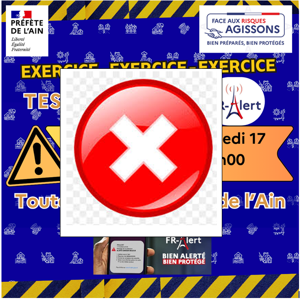 🚨EXERCICE ANNULE 🚨 Test du dispositif FR-Alert : La préfecture de l\'Ain a annulé le test de son dispositif d\'alerte et d\'informations à la population 📢Dans le cadre de la journée nationale de la résilience, du lundi 13 au vendredi 17 octobre 2025, une campagne d’essai du dispositif « FR Alert »…