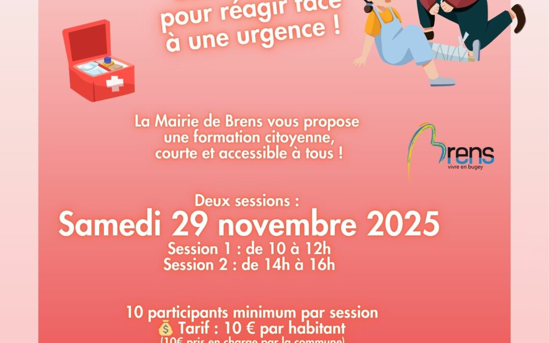 Apprenez les bons réflexes pour réagir face à une urgence ! 👉 Une première initiation courte, citoyenne et accessible à tous, pour acquérir des bases indispensables et pourquoi pas, se lancer dans une formation plus complète ultérieurement (PSC1 – 7h) 📅 Formation envisagée : Samedi 29 novembre 2025🕙 Session 1…