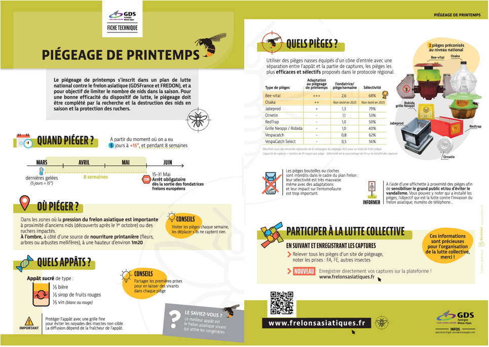 🐝 Quand ? Fin février → mi‑mai, dès que les températures dépassent 12 °C. 📍 Où ? Près des fleurs, anciens nids, ruchers. 🪤 Comment ? Pièges sélectifs avec appât sucré (sirop, bière, vin blanc). ⚡ Pourquoi ? Chaque reine capturée = des milliers d’individus en moins cet été. 💡…